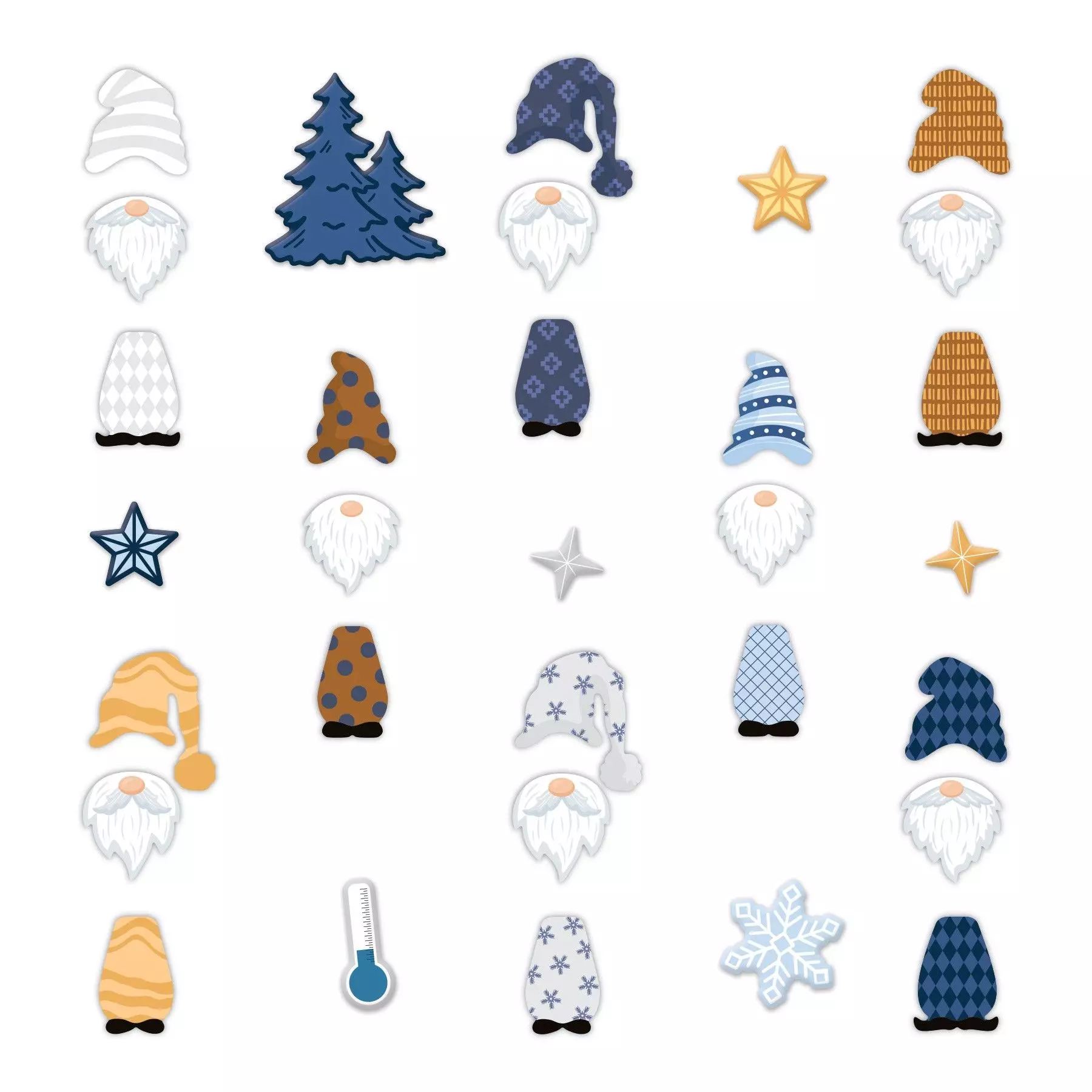 Embrace the cold and icy splendor with the Welcome Autumn Gnome Embellishment Pack! These die-cut embellishments are designed to mix and match to create your own gnomes and feature 13 each of hats, beards and bodies in frosted, rustic colors and designs like snowflakes, branches and twinkling stars — that’s 39 pieces in total! There are also 16 enamel stickers with winter-themed icons. These frosty friends are ideal alongside photos of playing in the snow and building snowmen, ice skating, weekend getaways to a ski resort, winter walks in the woods and more!