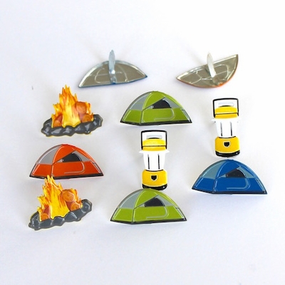 Camping brads are a great embellishment for card making and scrapbooking. A quick and easy scrapbook embellishment, our camping brads add a pop to your travel scrapbook pages and birthday cards.