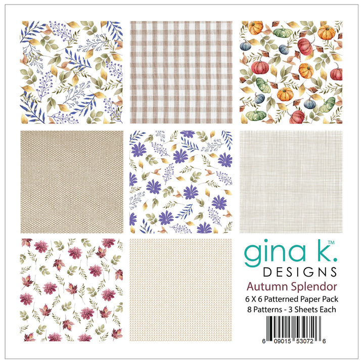 GKD Patterned Paper Pack- Autumn Splendor – 6 X 6- 24 sheets (3 each of 8 different patterns) *Originally Included with the Autumn Splendor kit*